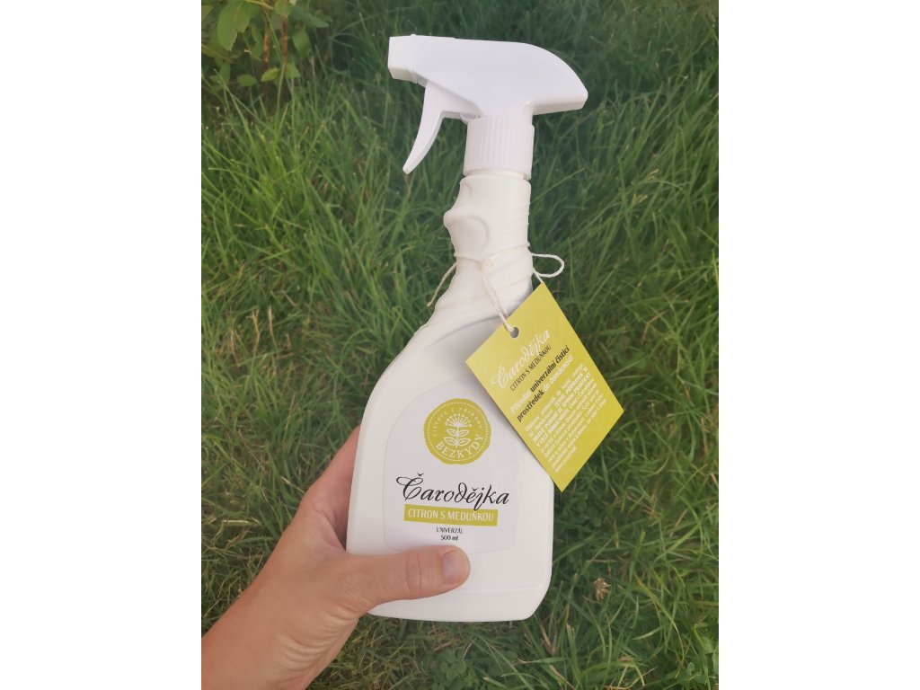 100% přírodní, univerzální čisticí přípravek, obsahuje bílý ocet 10%. Oblíbený pomocník do každé ekologické domácnosti. Tento přípravek si poradí se špínou prakticky v celé domácnosti (uklidí hravě kuchyň, koupelnu, toaletu, lednici, sporák a jiné). Úklid s Čarodějkou je rychlý a účinný. Dokáže nahradit několik dalších čisticích prostředků, čímž šetří peníze i místo ve vaší domácnosti. Jedná se o laskavý čisticí prostředek k lidem i k životnímu prostředí.